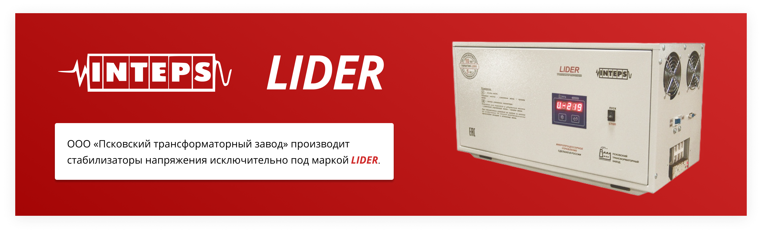 ООО «Псковский трансформаторный завод» - ведущий производитель стабилизаторов напряжения Lider и сухих трансформаторов (до 1000 вольт).